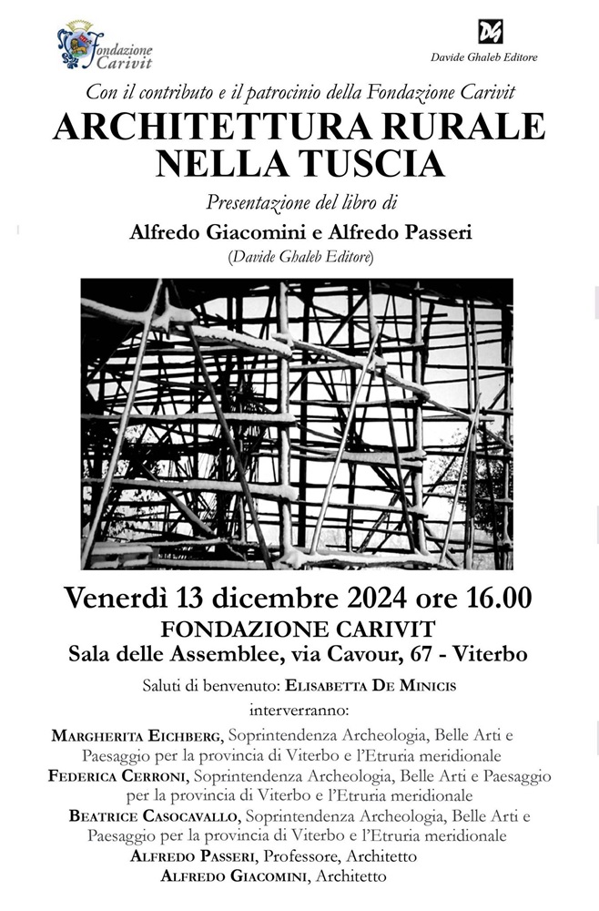 Architettura rurale nella Tuscia edito da Davide Ghaleb raccoglie una vasta collezione di immagini suggestive che ritraggono centinaia di edifici rurali, tra cui case di campagna, casali, cascine, fattorie e opifici agricoli. Queste costruzioni, oltre a rappresentare un prezioso patrimonio architettonico, sono custodi di storie e tradizioni, evocando un legame profondo con il territorio della Tuscia.  Molti di questi edifici, oggi abbandonati o in degrado, necessitano di urgenti interventi di recupero e conservazione per preservarne il valore storico e culturale. Arricchito dai contributi di Giancarlo Angelelli e Francesco Galli, il volume sottolinea l’importanza di salvaguardare queste strutture, la cui perdita potrebbe compromettere in modo irreparabile l’identità e il paesaggio della Tuscia.