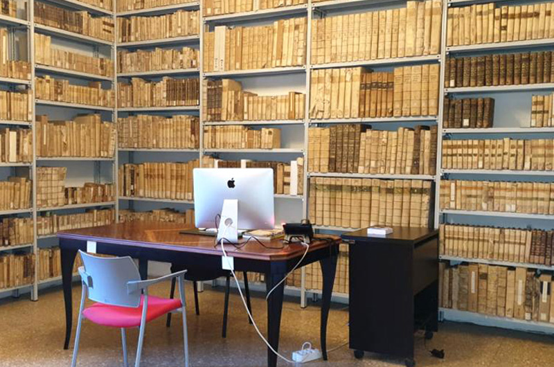 Un chilometro di libri antichi e duecento metri lineari di manoscritti, recuperati dall’inesorabile processo di distruzione, ora riordinati e messi in sicurezza. Primo e indispensabile step verso la riapertura al pubblico della Biblioteca Comunale degli Ardenti di Viterbo. Operazione partita mesi addietro grazie al sostegno della Fondazione Carivit e alle donazioni di aziende del territorio e privati cittadini. Richiederà ancora del tempo. Così come il restauro e la risistemazione dell’intero palazzo Santoro in piazza Verdi, che mostra tutte le rughe del tempo insieme a oggettive testimonianze di un decadimento che viene da lontano. Prova ne sia anche il retrostante sterrato esterno, quello di Campo Boio, che offre certo ricordi dei drammatici bombardamenti della seconda guerra mondiale, ma anche chiara dimostrazione di una persistente incuria, ingiustificata, ingiustificabile e per questo imperdonabile. Intanto procede il salvataggio del patrimonio cartaceo del sito. Un chilometro, appunto, di manoscritti che è stato letteralmente sottratto all’aggressione devastante dell’umidità, all’assalto dei roditori di stanza nel palazzo ormai da anni, alla negligenza quasi generale. E’ sufficiente visionare le stanze al pianoterra per comprendere e imprecare: se l’umidità si potesse diffondere nell’aria saremmo tutti contagiati. Altro che Covid. E poi muri scalcinati, pavimenti dove restano indelebili le tracce degli scaffali che ospitavano alla bell’e meglio volumi di ogni età e di ogni contenuto. Il primo intervento è stato quello di ripulire gli ambienti, subito dopo quello di salvare i libri e i manoscritti. Almeno 70.000 mila pezzi. I libri in condizioni meno critiche (in questo caso un chilometro e mezzo di estensione) sono stati trasferiti e depositati presso la vecchia caserma dei Vigili del Fuoco ai Cappuccini; i manoscritti in stato di salute più grave sono stati e sono curati da Lorenzo Abbate, responsabile Indicizzazione dei Fondi Manoscritti della Biblioteca Comunale degli Ardenti. Più semplicemente, un premuroso medico di libri. Da mesi lavora, in solitudine, al riordino e salvataggio di pergamene secolari che rappresentano la storia documentata di Viterbo, della Tuscia, ma non solo. “In questi faldoni – spiega – c’è la città, ci sono i rapporti tra la sua gente e l’amministrazione pubblica. Storia di vita vissuta che rischiava di andare distrutta e dimenticata”. Tutto materiale che ora viene letto, datato, catalogato e inserito in cartoni appositi, dotati perfino di apparati microclimatici che ne garantiscono la perfetta conservazione. “Attraverso questa operazione di riordino – aggiunge Abbate – potremo anche definire la provenienza dei testi, cioè da quali biblioteche cittadine sono arrivati agli Ardenti. Insomma, dare loro una completa identità. Il Covid, almeno in questo caso, sta aiutando in quanto permette a me e a tutto il personale della Biblioteca – che ringraziamo – di dedicare più tempo al recupero alla catalogazione dei volumi”. L’umidità e il pericolo dei roditori al piano terra di palazzo Santoro sono nemici di ieri, probabilmente debellati, i prossimi lavori, quelli più urgenti, riguarderanno la sistemazione delle scale che conducono al secondo piano, l’installazione di un ascensore, l’eliminazione della vecchia e tutt’altro che sicura caldaia per il riscaldamento. E poi la ristrutturazione degli infissi, del tetto, della terrazza che avrebbero meritato più attenzione nel corso degli anni. I soldi ci sono (si parla di un finanziamento regionale di 270.000 euro), la volontà del Commissario della Biblioteca Paolo Pelliccia e di Lorenzo Abbate anche. Paradossalmente manca il tempo, quello necessario per mettere al più presto a disposizione di tutti un asset storico e culturale che non è soltanto di Viterbo.