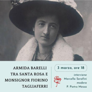 Il 3 marzo 2022 alle ore 18.00 presso il Santuario di S. Rosa a Viterbo si terrà l’incontro organizzato dal Centro Studi Santa Rosa da Viterbo onlus dal titolo “Armida Barelli tra santa Rosa e monsignor Fiorino Tagliaferri”. Interviene Marcella Serafini, modera p. Pietro Messa. L’appuntamento – in presenza e in streaming sul canale Youtube del CSSRV – apre il triduo di preparazione alla festa liturgica di santa Rosa, che la tradizione vuole scomparsa il 6 marzo: è questo il dies natalis, ovvero il giorno in cui Rosa è nata al cielo.