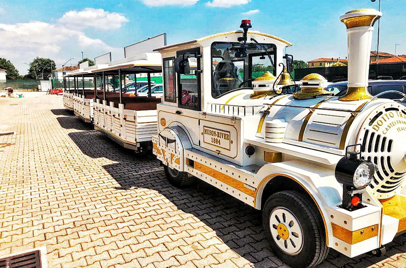 Il trenino, fornito dalla nota ditta Dotto di Castelfranco Veneto (i loro treni turistici sono presenti da quasi 60 anni in oltre 50 paesi di tutti e 5 i continenti), è composto da una motrice e 3 vagoni nuovi di fabbrica, ognuno con la possibilità di ospitare sino a 20 passeggeri (60 in totale); il terzo vagone è accessibile anche alle persone diversamente abili, grazie a una particolare pedana posta in fondo alla carrozza.