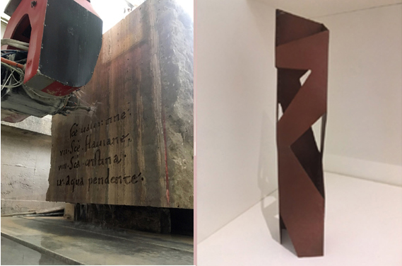 L’opera di Leonardo Petrucci prosegue l’idea di questa tensione motrice sintetizzando l’eredità storica e culturale della via Francigena in una grande scultura in travertino attraversabile dai visitatori, sulle cui facciate sarà inciso il primo documento che ha consentito l’identificazione di questo Cammino. Uno scavo archeologico preventivo dell’area termale ha fatto emergere delle significative preesistenze di epoca romana che contribuiscono ad arricchire ulteriormente il nesso culturale che lega l’intervento contemporaneo alla storia stratificata di questo territorio.