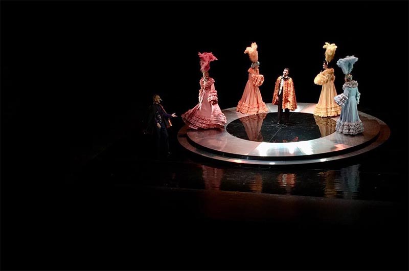 Lo spettacolo procede  energico e irriverente, con frequenti cambi di scena che obbligano l’affiatato e infaticabile cast – oltre al protagonista Cirillo, Valentina Picello, Giacomo Vigentini, Rosario Giglio, Giulia Trippetta e Carlo Amleto Giammusso, impegnati in più parti – e rapidi cambi di costumi – lussureggianti e sbeffeggianti trionfi di paillettes.