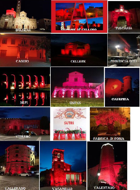 Coloriamo l’Italia di rosso è un’iniziativa che ha coinvolto la provincia di Viterbo, l’università degli studi di Viterbo, i comuni di Viterbo, Bolsena, Canepina, Canino, Celleno, Cellere, Fabrica di Roma, Tuscania, Valentano, Vallerano, Vasanello e Sutri.