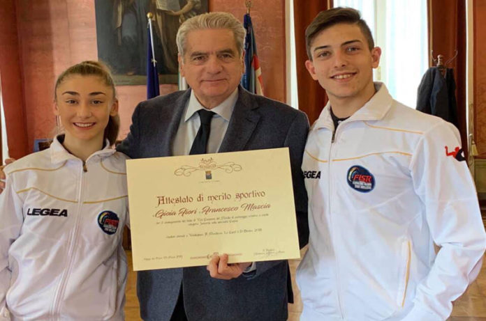 Attestato di merito sportivo ai campioni di pattinaggio artistico Gioia Fiori e Francesco Mascia