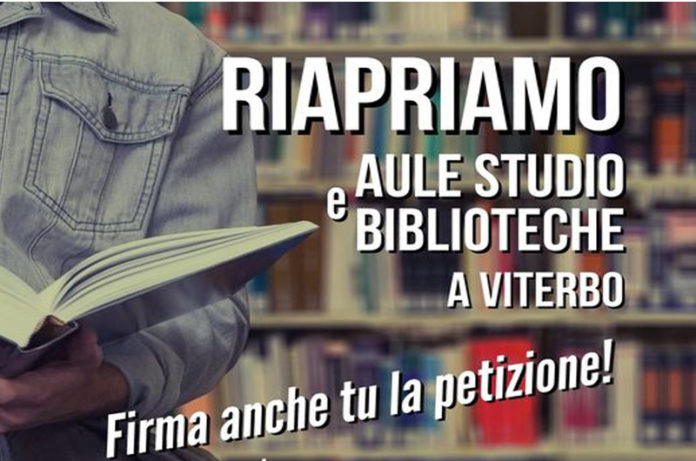 Insieme alle altre associazioni studentesche dell’università degli studi della Tuscia vogliamo dare voce ad una parte della comunità studentesca viterbese. Per questo abbiamo lanciato una raccolta firme per la riapertura della biblioteca comunale e delle aule studio dell’università degli studi della Tuscia.