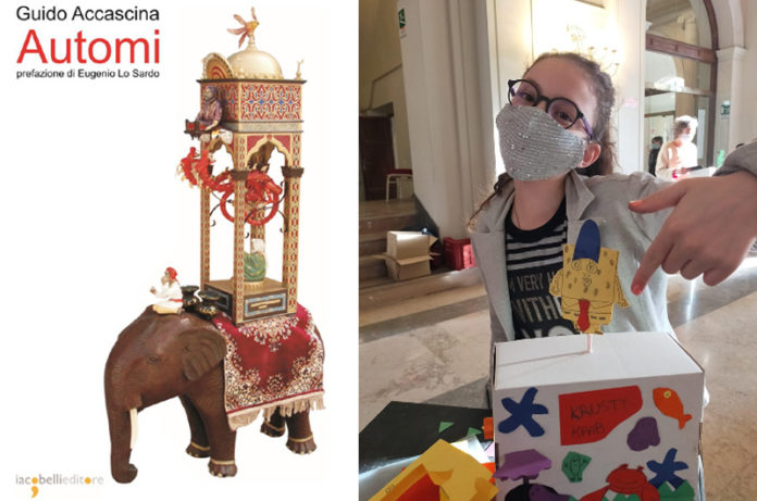 Metti un pomeriggio tutto per loro  insieme a Guido Accascina, fondatore del Museo Automata Modern, in Italia, autore del libro sulla storia dell’automata: “Automi” 328 pagine, 418 foto a colori e 135 illustrazioni. Il volume, traccia la storia dell’automata e dei loro produttori, dalla dinastia Tolemaica d’Egitto fino ad oggi. Un ingegnere  che vive in Sabina che ha raccolto una collezione di oggetti capaci di muoversi e ha scritto un libro per raccontarli. Il libro è’ stato donato dall’autore ai giovanissimi che hanno partecipato al suo laboratorio nel Foyer del Teatro dell’Unione questo tiepido sabato autunnale del 10 ottobre.
