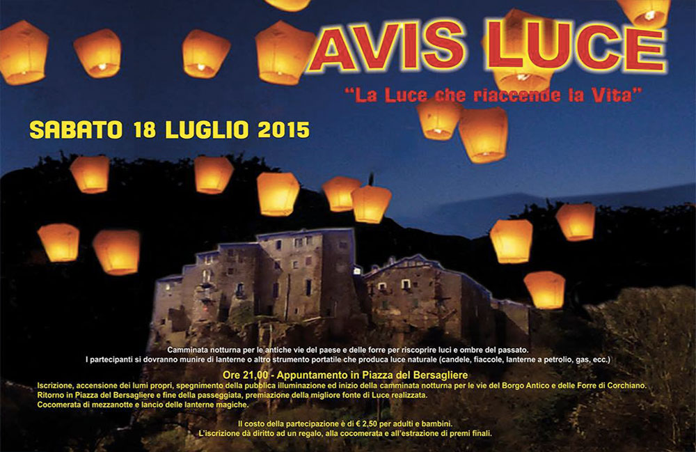 Una passeggiata notturna tra le antiche vie e le forre di Corchiano, per riscoprire luci e ombre del passato. È Avis Luce – La luce che riaccende la vita, l’iniziativa lanciata dall’Avis Corchiano sabato 18 luglio con appuntamento alle 21 in Piazza del Bersagliere.