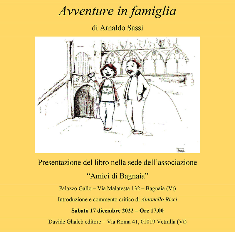 Avventure in famiglia, il libro di Arnaldo Sassi, presentazione a Palazzo Gallo