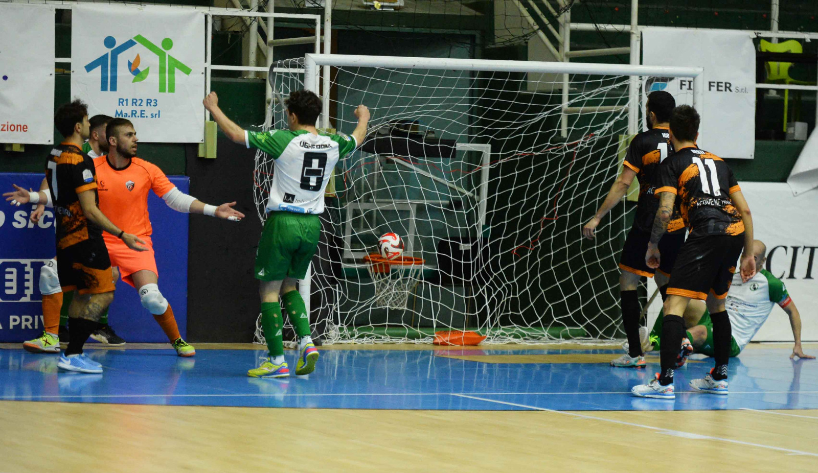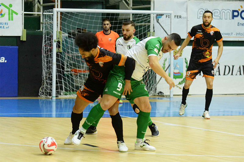 Monsignori lascia fuori capitan Davì, Frigerio e Braconcini, mentre Basile deve rinunciare a Parisi, Etzi, Hozjan. Assenze pesanti sia da una parte che dall’altra. L’inizio è da incubo per l’Active Network che sembra essere rimasta negli spogliatoi. Galletto dopo 4’52’’ porta avanti gli irpini che poco dopo reclamano per un presunto rigore. I viterbesi non riescono a reagire, sono molti nervosi e sia Igor che Oitomeia finiscono sulla lista dei cattivi. Gara che di fatto prende la strada di Avellino nel giro di un minuto, quando Wilde (gran goal) e poi Arillo portano il match sul 3 a 0. Troppo brutta per essere vera, l’Active Network inizia a giocare con tranquillità e Oitomeia trova il goal del 3 a 1 prima del riposo.