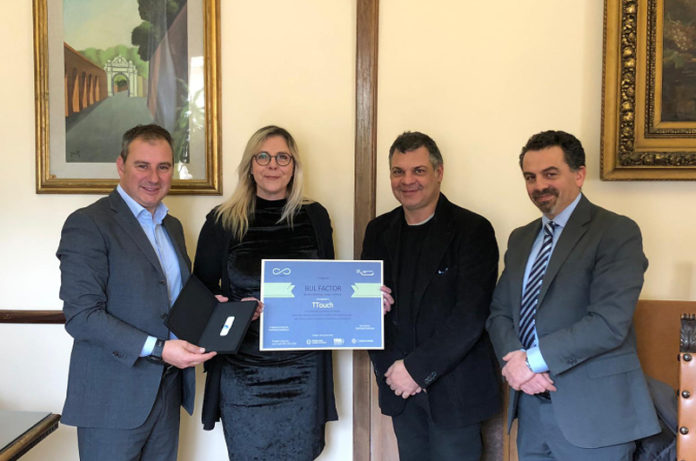 In particolare TTouch, l’impresa guidata da Francesca Capacchietti e Astolfo Vesci, ha realizzato e brevettato il progetto di tavoli e totem multimediali multitouch dal design italiano. Il prodotto, realizzato interamente a Viterbo, ha trovato applicazione in alcuni progetti adottati in tutta Italia come la Cattedra e banco digitale interattivo per le scuole e gli istituti di formazione professionale, Tavoli multitouch per la ristorazione con relativa app collegata Ordinik, i Totem multitouch per il settore turistico con relativa app collegata T-Smart. Essendosi aggiudicato la fase locale del “Premio Bul Factor” il progetto di TTouch è stato ammesso di diritto alla successiva fase di valutazione nazionale.
