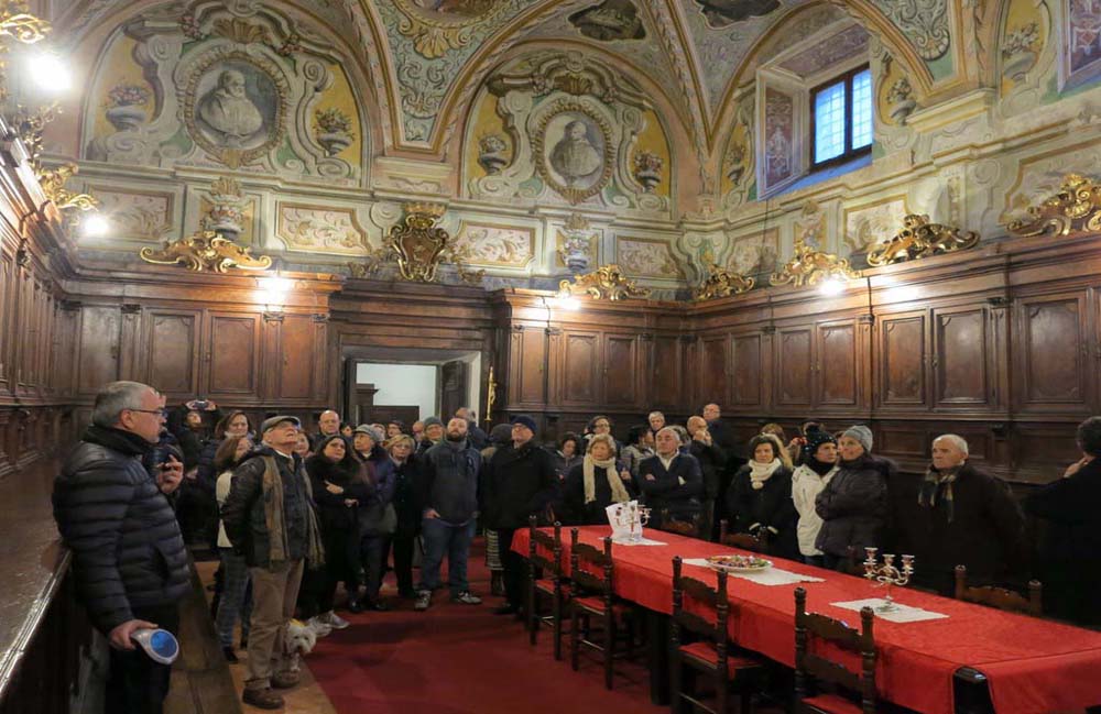 Davvero bella l’idea di aprire al pubblico la Basilica della Quercia in occasione del sesto centenario della Sacra Immagine e dei 550 anni del Patto d’Amore con la Città di Viterbo. Il frutto di una sinergia tra la pro loco rappresentata dalla presidente Irene Temperini e Don Massimiliano Balsi Rettore della Basilica di Santa Maria della Quercia. Insieme nella penultima domenica di gennaio hanno condotto il numeroso pubblico intervenuto alla visita guidata riservando ai partecipanti non poche sorprese e tante emozioni.Tra di esse la Sala degli ex voto che riporta ad un periodo che va dal 400 all’800. Non da meno la sacristia mirabilmente affrescata con gli scranni in radica di noce, l’altare maggiore con riprodotto il temporale e l’elogio alla Madonna della Quercia. Un momento piacevole quello di domenica tutto dedito alla riscoperta dei nostri monumenti, confortati dalla speranza che iniziative simili prolifichino nel territorio. L’opera di restauro alla Basilica della Madonna della Quercia la si deve in primis all’impegno della Fondazione Carivit che ha erogato un finanziamento di 110 mila euro sui 200mila complessivi. Alla visita guidata è intervenuto anche il sindaco Leonardo Michelini che ha elogiato queste iniziative che partono dai cittadini in risposta ad una esigenza legata alla valorizzazione, alla riscoperta del territorio e alla conservazioni dei tesori che ne sono custoditi.La Basilica torna a splendere con una serie di iniziative che fanno parte del programma del centenario.Rimarrà aperta nei fine settimana insieme al museo degli ex voto.E tra gli appuntamenti attesi, il primo marzo il ripristino di un’antica tradizione, quella del Pranzo del Purgatorio al chiostro del Vignola.Il Santuario riapre le sue porte e si concede ai suoi visitatori.