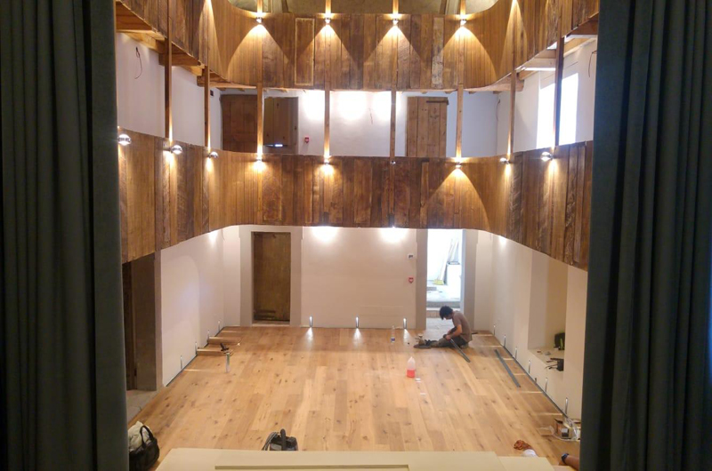 Il progetto presentato prevede lavori in opere di finitura muraria, di tinteggiatura e di pavimentazione di spazi interni accessori, nonché di opere minori di finitura. In particolare, verranno terminati i lavori della stanza “lavanderia” necessaria al passaggio per accedere ai palchetti dai servizi igienici, del tratto di scala che collega la sala con i palchetti, nei camerini e nella stanza “foyer”. Inoltre, nella sala teatro verrà installata la macchina ventilante, nel disimpegno di accesso verrà montata la pedana per disabili, così come nel vano di accesso dal cortile verrà sistemata la scala anche con una piattaforma per disabili.