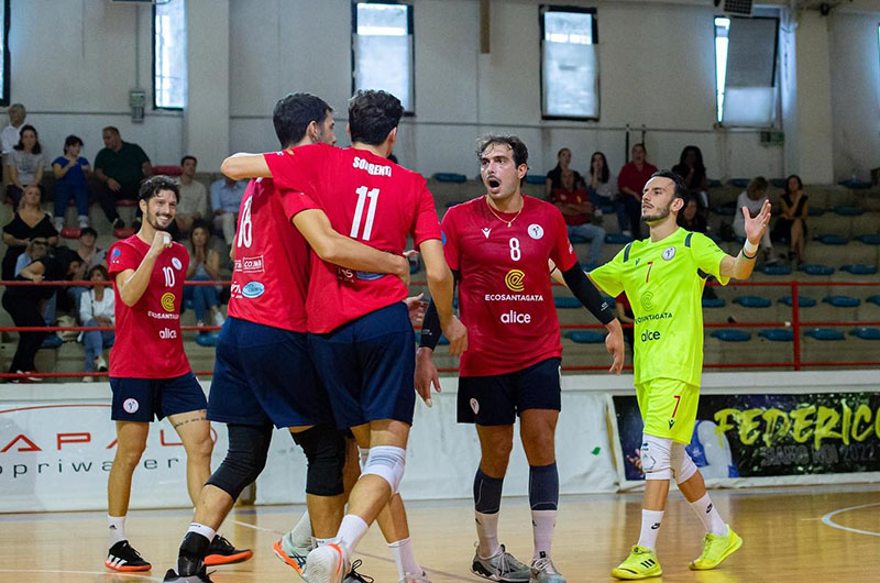 Il coach schiera uno starting six composto da Cordano alzatore, Rossi opposto, Petri (promosso capitano quest’anno) e Defabritiis schiacciatori, Ceccobello e Consalvo centrali, con Andreini libero.