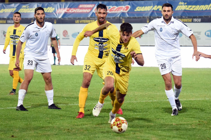 Passato il pericolo la Viterbese prende coraggio e al minuto 16’ passa in vantaggio con Alessandro Rossi con una finezza di tacco sugli sviluppi di un corner. Pochi secondi prima era stato De Santis a sfiorare il goal da buona posizione.