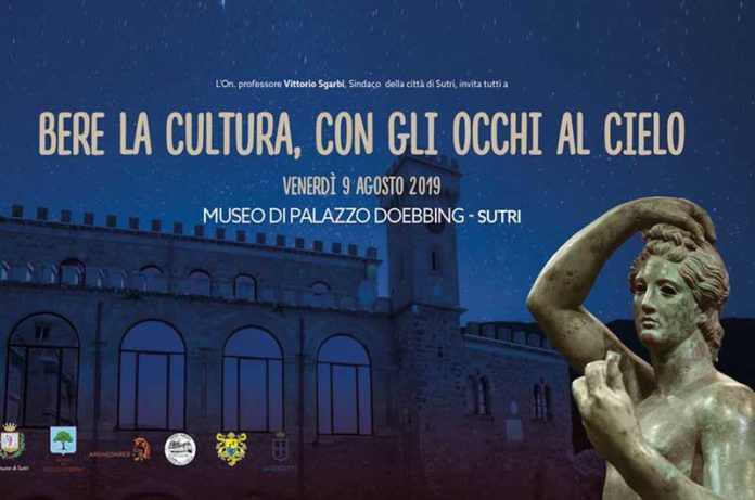 L’On. professor Vittorio Sgarbi, sindaco della città di Sutri, invita tutti a “Bere la cultura, con gli occhi al cielo” venerdì 9 agosto presso il Museo di Palazzo Doebbing, in piazza Duomo a Sutri.