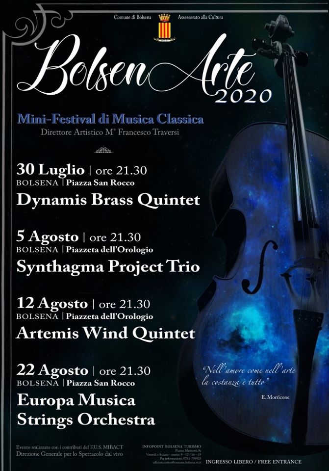 Si è aperta nel migliore dei modi la stagione concertistica del BolsenArte 2020, la rassegna fortemente voluta dall’amministrazione comunale di Bolsena e dall’assessore alla Cultura Raffaella Bruti, per dare un segnale di ripresa attraverso la musica classica.