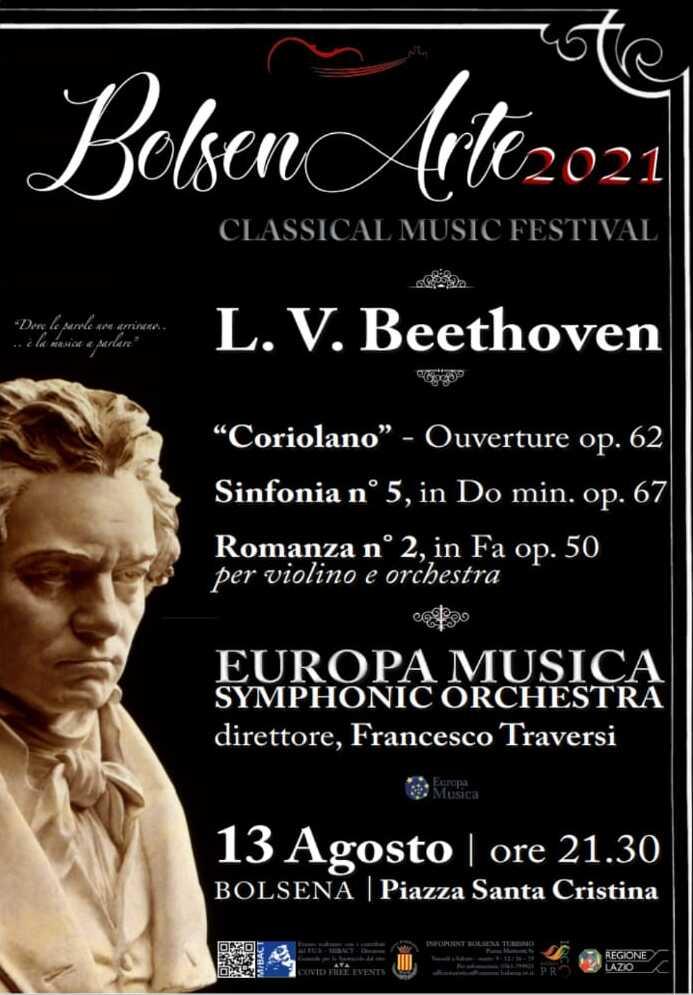 Il concerto della prestigiosa Europa Musica Symphonic Orchestra conclude la seconda edizione di “BolsenArte”, il festival della musica classica organizzato dall’Assessorato alla Cultura del Comune di Bolsena, con il contributo del Ministero della Cultura, della Regione Lazio e dell’Associazione Cento Città in Musica, per la direzione artistica del maestro Francesco Traversi (nella foto), medaglia d’oro nel 2016 al Global Music Award negli Stati Uniti e recentemente insignito Ufficiale della Repubblica dal presidente Sergio Mattarella, per meriti artistici. Il 13 agosto, alle ore 21,30, la suggestiva cornice di piazza Santa Cristina accoglierà i 43 elementi dell’orchestra diretta dal maestro Traversi, con un programma sinfonico interamente dedicato a Ludwig van Beethoven a 250 anni (+1) dalla nascita del compositore tedesco.