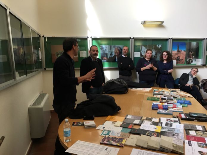 Libri, scrittori, editori, studenti e professori: tutti insieme in uno spazio che non è un’aula, con un grande tavolo a fare da bancone, per dare voce senza microfoni a storie ed emozioni che si incrociano sullo scorrere delle pagine. Ha preso così ufficialmente vita il Bookcrossing al Dipartimento di Scienze Umanistiche, della Comunicazione e del Turismo presso l’Università della Tuscia. Un’iniziativa fortemente voluta dal direttore del Dipartimento Giovanni Fiorentino, che ha visto la partecipazione dello scrittore Fabio Stassi, dell’editore e fondatore della casa editrice Minimum Fax Daniele Di Gennaro e della professoressa Giovanna Santini.