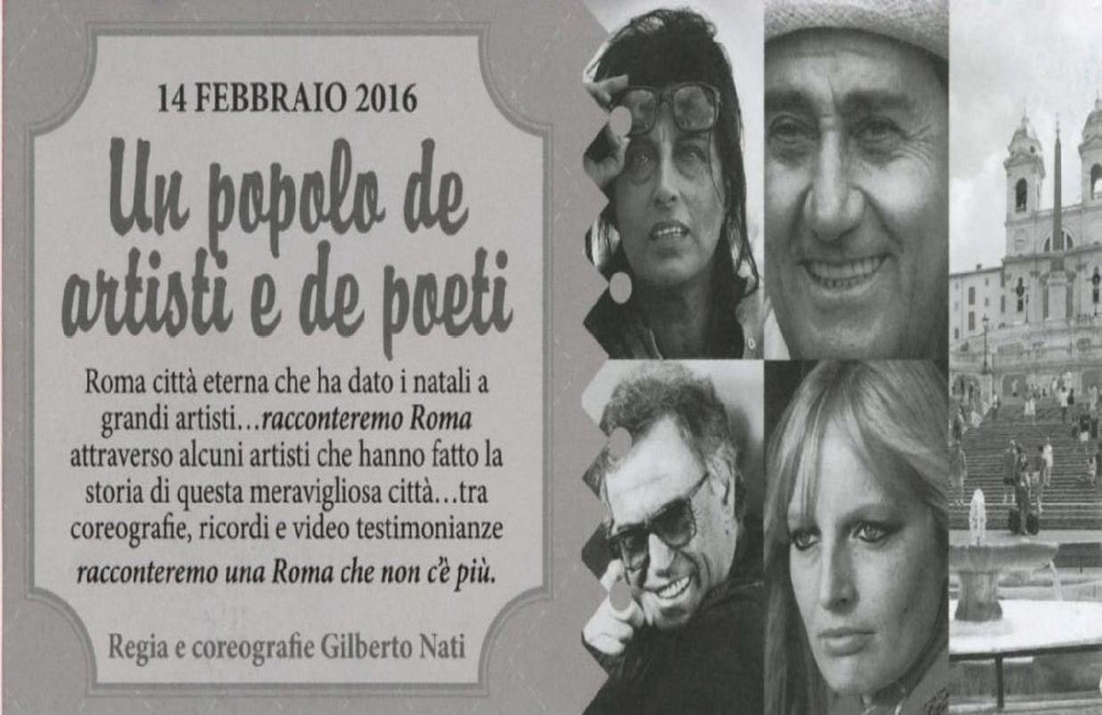 Con “Un popolo de artisti e de poeti…Roma”, torna a calcare il palcoscenico del teatro fabrichese “La Compagnia Dei Sogni”, guidata dal coreografo e direttore artistico de “La Fabbrica del Teatro”, Gilberto Nati, che tiene in maniera particolare a questo spettacolo, dedicato alla sua infanzia e al ricordo della mamma.