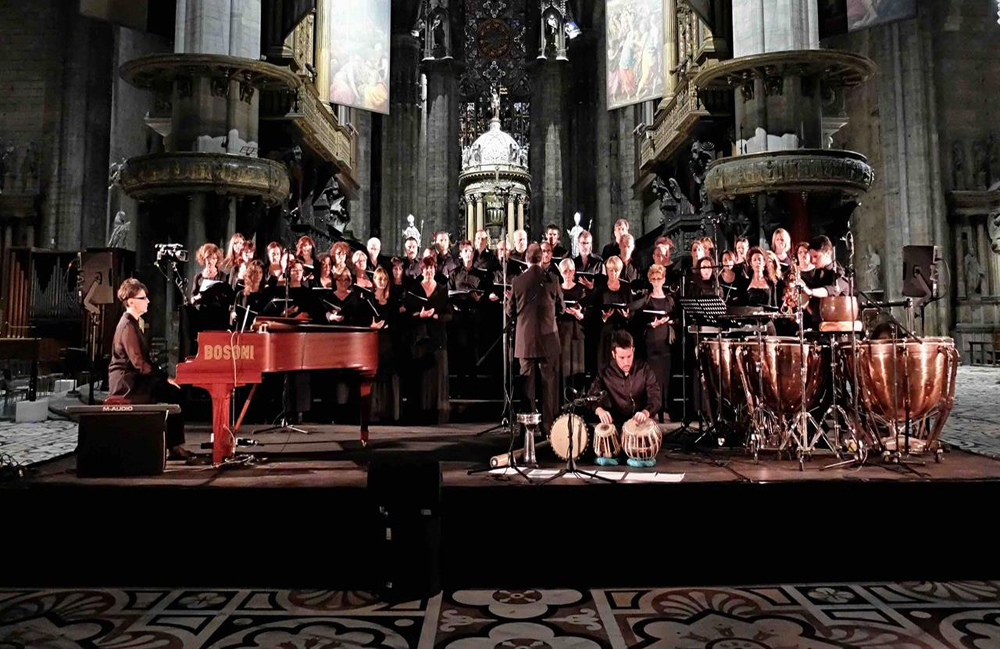 Alla presenza dell’Assessore alla Cultura del Comune di Milano, del professor Philippe Daverio, di Mons. Gianantonio Borgonovo, del sovrintendente della Veneranda Fabbrica del Duomo e di molte altre personalità di spicco, l’Ensemble Vocale “il Contrappunto” e la Camerata Polifonica Viterbese “Zeno Scipioni” si sono esibiti nella suggestiva cornice del Duomo di Milano nella cantata “Cum grande humilitate” composta da Cinzia Gangarella, all’interno del progetto ideato da Ottavia Fusco che si è distinta anche nel ruolo di voce solista. Un’opera prima di grande impatto emotivo che ha voluto raffigurare nella pluralità delle voci e delle percussioni, le creature del cantico di San Francesco.