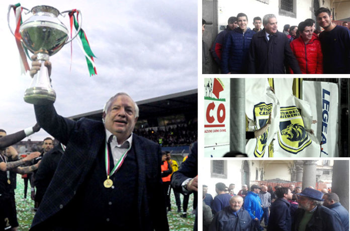 L’estate che non ti aspetti, così quando tutto sembrava filare via tranquillamente verso una nuova promettente stagione è arrivato l’episodio che ha scatenato il finimondo. La pesante, sproporzionata ed ingiusta squalifica inflitta a Luciano Camilli ha fatto infuriare il patron gialloblù che ha minacciato di abbandonare la Viterbese ed il mondo del calcio. La preoccupazione per quello che potrebbe accadere è sicuramente forte e la città di Viterbo, tifosi in testa seguiti dall’amministrazione, si è stretta intorno alla famiglia Camilli con la speranza che tutto torni alla normalità. Ed in questa ottica sicuramente importante il sit-in che si è tenuto con il primo cittadino Giovanni Arena e con numerosi altri esponenti presenti del mondo politico viterbese. “Innanzitutto volevo ringraziare tutti i tifosi presenti – esordisce Giovanni Arena – ed in particolare Paola perché si è posta da tifosa intelligente entrando immediatamente nel merito della situazione senza fare demagogia. Ci vedete spesso allo stadio, per cui forse dovremmo stare noi dalla vostra parte, la sensazione che ha avuto Paola da parte nostra non c’è stata e da parte nostra abbiamo espresso la solidarietà che si concretizza con l’invito a Piero Camilli ed alla Viterbese di un riconoscimento ufficiale da parte dell’amministrazione per la vittoria in coppa Italia. Alternative ad un presidente come questo ce ne sono poche, la sicurezza economica e di esperienza calcistica è difficile trovare per cui abbiamo questa risorsa e ce la dobbiamo tenere ben stretta. Non voglio entrare nel merito delle decisioni ma voglio ribadire da parte dell’amministrazione gli investimenti facendo quanto potuto e voglio ricordare anche la precedente amministrazione che aveva speso diversi soldi per la messa in sicurezza dello stadio, noi ci stiamo accingendo ad ulteriori interventi che riguardano l’impianto di irrigazione con l’utilizzo del pozzo che si trova a Prato Giardino ed i seggiolini a norma che verranno installati entro il prossimo 25 per l’omologazione dell’impianto. Abbiamo confermato la convenzione con la società, effettuato altri interventi per il manto erboso, per l’efficienza energetica, insomma non voglio fare adesso la lista al dettaglio ma serve solo a dimostrare che ci teniamo che chi è chiamato a gestire la Viterbese si trovi in una situazione ottimale. Sono stato sollecitato da molti tifosi sulla realizzazione del terreno in sintetico al Pilastro ma ci sono stati dei ritardi dovuti purtroppo a tempi burocratici a causa di un ricorso. Ora stiamo aspettando la scadenza di questi termini che avverrà il dieci giugno dopodiché verrà firmato il contratto il giorno successivo per iniziare subito i lavori che nei tempi di trenta-quaranta giorni verranno ultimati quindi entro la metà di luglio avremo finalmente questa importante struttura fondamentale per gli allenamenti della squadra a Viterbo. Insomma dobbiamo creare le condizioni affinchè il presidente Camilli si senta più incoraggiato a continuare questa avventura che abbiamo vissuti tutti con grande passione, momenti che vorremo continuare a vivere. Staremo vicini sicuramente al presidente Camilli, che contatterò nelle prossime ore, anche con il vostro contributo fondamentale cercando di fargli capire che è importante che la Viterbese continui”.