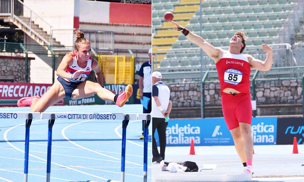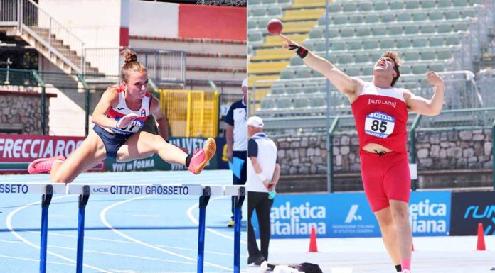 Ottime performance degli atleti dell’Alto Lazio, impegnati da venerdì 21 a domenica 23 luglio ai Campionati Italiani Juniores di atletica di Grosseto, che sono andati in scena presso lo stadio Zecchini con la presenza di ben 1000 atleti provenienti da tutt’Italia. All’importante manifestazione che ha presentato i migliori degli Under 20 italiani, in gara anche tre atleti viterbesi dell’Atletica Alto Lazio, Giuseppe Guerra, impegnato nel Peso e nel Disco, Matteo Cianchelli impegnato negli 800m. ed Elena Vergaro che anche quest’anno veste i colori della forte compagine reatina della Studentesca Andrea Milardi impegnata nei 100hs. e nella staffetta 4x100m. Matteo Cianchelli, allenato da Giuseppe Misuraca, si è presentato nella gara degli 800m. con ben 43 iscritti e la disputa di 4 serie con il 21° accredito con 1’54”92 , ma nell’occasione ha saputo dare il meglio di se classificandosi 4° nella 3^ serie e 14° in classifica generale con il suo nuovo record personale di 1’54”77. Elena Vergaro, esplode nella gara dei 100Hs. e dopo aver ottenuto il 4° tempo nelle batterie di qualificazione con 14”37 ed il 4° tempo anche nelle semifinali con 14”29, si migliora ancora in finale sfiorando il bronzo con il suo nuovo record personale di 14”24 (vento -0,8), per la gioia anche del suo allenatore Umberto Battistin. Giuseppe Guerra, allenato da Sergio Burratti, non riesce nel Peso ad avvicinarsi ai suoi migliori lanci e con 13,83 deve accontentarsi della 10^ piazza; prova sfortunata invece nel disco dove nel tentativo di realizzare un buon risultato tecnico incappa in tre nulli successivi, non accedendo ai lanci di finale (G.M.)