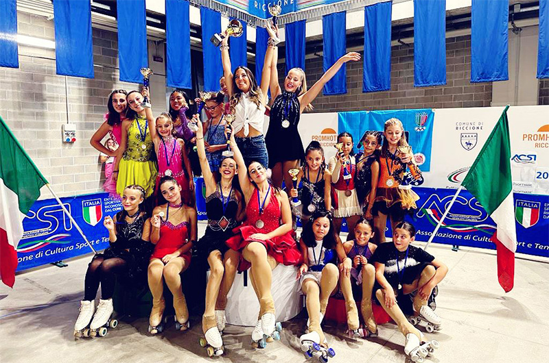 Tornano a casa contente le 18 atlete della Ardita Pattinaggio sezione di Bomarzo che domenica 3 settembre hanno gareggiato al Campionato Nazionale ACSI 2023 nella città di Riccione, specialità solo dance divisione nazionale, gara di altissimo livello che richiama diverse Società da tutta Italia.