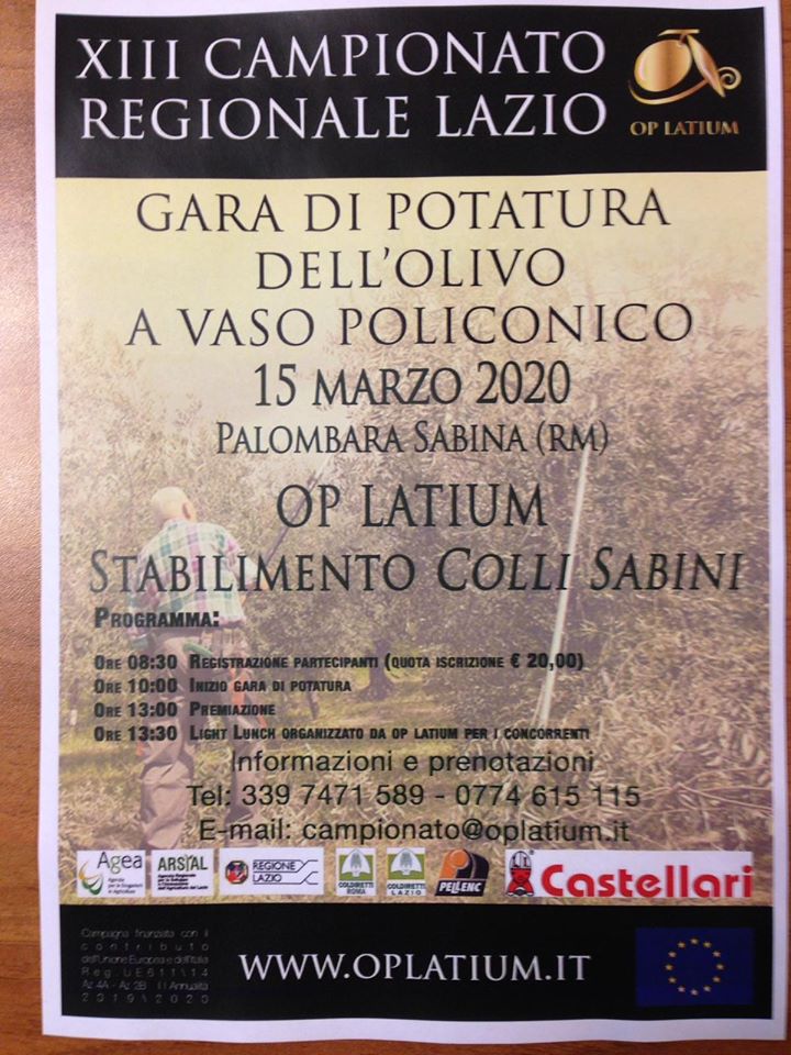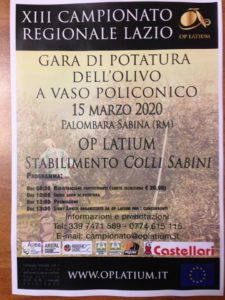 La gara si svolgerà il giorno 15 marzo 2020 presso lo Stabilimento OP LATIUM “Colli Sabini” sito in S. P. Pascolare, 87 – Palombara Sabina -RM-.
