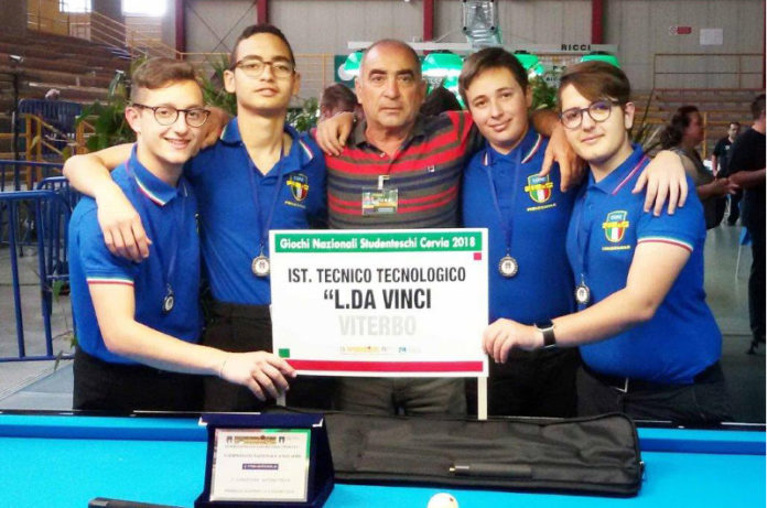 Sabato 6 aprile si svolgerà a Viterbo, la prima delle due prove del Campionato Regionale Juniores studenti di Biliardo, la seconda giornata è prevista sabato 27 aprile. La manifestazione fortemente voluta dal presidente della FIBIS (Federazione Italiana di Biliardo Sportivo) Vito Primasso, vedrà in gara gli allievi dell’ITT Leonardo Da Vinci di Viterbo che da 4 anni portano avanti, guidati dal prof. Giuseppe Misuraca e dal tecnico federale Massimiliano Patrizi, il progetto nazionale del “Biliardo a Scuola”. Sedici gli allievi dell’Istituto viterbese che si confronteranno nella difficile specialità dei 5 birilli, tra i quali anche i 4 studenti che lo scorso anno a giugno a Cervia hanno conquistato l’argento ai campionati Italiani studenteschi a squadre, Alessandro Pugliesi di Vignanello, Giorgio Scarponi e Cristian Vitale di Canino e Christian Feliziani di Viterbo. La formula di gara prevede la composizione di batterie di 8 giocatori, ad eliminazione diretta con partite da disputarsi ai 60 punti al meglio dei 3 set (due partite su tre). Al termine delle due prove il 1° classificato verrà eletto Campione Regionale Juniores Studenti 2018/2019, ed in base alla classifica finale ottenuta saranno assegnati i posti per la partecipazione al Campionato Italiano Juniores. I tornei previsti ad aprile serviranno anche al prof. Misuraca per decidere la composizione della squadra che quest’anno prenderà parte nuovamente in maggio ai Campionati Italiani Studenteschi previsti ancora a Cervia. Le due manifestazioni regionali saranno ospitate presso la sala del “Biliardo Club” in via Monte Nevoso a Viterbo di Dario Pasquini, 1^ categoria nazionale che da quest’anno ha messo a disposizione della scuola viterbese e dei suoi 30 ragazzi frequentanti il corso di biliardo, tutta la sua esperienza e conoscenza del gioco. L’obiettivo dell’ambizioso progetto che si svolge all’ITT di Viterbo è quello di proporre nella scuola secondaria di secondo grado, il biliardo come strumento didattico, per far avvicinare attraverso la pratica e lo studio geometrico del gioco, alle materie scientifiche (Matematica, Fisica principalmente), nel loro lato applicativo, trovando risposte ai quesiti che man mano si presentano.