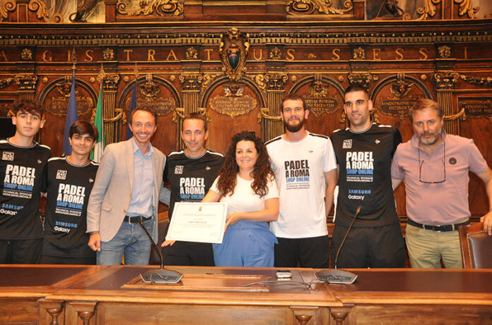 La sindaca Chiara Frontini ha consegnato nella giornata di ieri un attestato di merito sportivo alla squadra ASD The Box per la vittoria al campionato regionale Padel serie D. Alla cerimonia, svoltasi nella sala consiliare di palazzo dei Priori, sono intervenuti anche l’assessore allo sport e benessere Emanuele Aronne e il consigliere comunale Simone Onofri. Un riconoscimento che la sindaca ha voluto conferire alla realtà sportiva viterbese che lo scorso 1 luglio ha conquistato la promozione in serie C. Un cammino partito dalle fase a gironi con iscritte 108 squadre di tutta la regione, terminato contro la squadra del Grifone Padel di Roma.