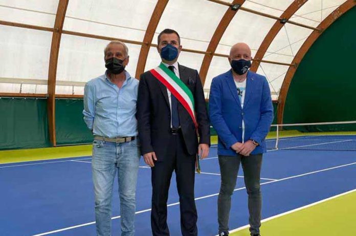 Il taglio del nastro è avvenuto al termine dei lavori di manutenzione straordinaria dello storico impianto sportivo comunale, il cui restyling ha portato al rifacimento e alla sistemazione della pavimentazione del campo da tennis indoor, mediante l’apposizione di un manto sintetico in resina acrilica bicolore di nuova concezione.