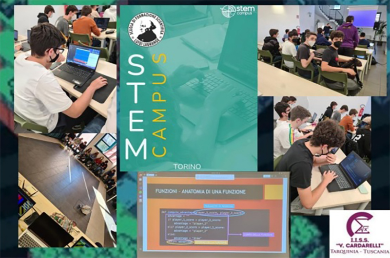 Quando studi informatica con passione quale modo migliore di svolgere l’alternanza scuola lavoro (PCTO) in un Campus STEM sulla robotica e la programmazione di videogiochi? Valerio, Roberto e Francesco della classe III C del liceo scientifico dell’IISS V. Cardarelli non si sono fatti sfuggire l’occasione di vivere questa appassionante avventura. Il prof d’Informatica G. Molinaro si è reso immediatamente disponibile ad accompagnarli a Torino presso la scuola di alta formazione scientifica L. Lagrange per partecipare ai corsi intensivi che hanno occupato tre giorni fino ad arrivare alla realizzazione di piccoli automi o di videogiochi dopo aver appreso i fondamenti della programmazione in Python, dei microcontrollori(Arduino) e della libreria Pygame. Durante i tre giorni i ragazzi hanno seguito un corso di 14 ore specifico partendo dalle basi del linguaggio informatico  fino ad arrivare alla realizzazione di un progetto finito attraverso sessioni di due ore di lavoro. Successivamente è stato proposto loro un minicorso di 6 ore a scelta tra fisica quantistica proposta attraverso un sfida game-roules, oppure sulle biotecnologie del futuro, infine su come “programmare un’intelligenza artificiale” utilizzando dati di spotify, tik tok e del videgioco Fifa. La scuola d’alta formazione L. Lagrange di Torino vanta una tradizione di quasi 20 anni e offre corsi tenuti dai migliori divulgatori nonché docenti afferenti alle università e del Politecnico di Torino. L’esperienza, a detta dei ragazzi, è stata coinvolgente, stimolante, unica nel suo genere. Non esiste modo migliore di imparare divertendosi e questo avviene quando la passione viene stimolata dai nuovi metodi di apprendimento del “Saper fare”. Il prof. Molinaro inoltre si dice felice di aver allacciato importanti rapporti di collaborazione e di aver visto studenti così appassionati alla sua materia direttamente all’opera. Il nostro Istituto si augura che tutto ciò possa costituire per questi e per i prossimi studenti un trampolino per proiettarsi nello studio di materie che li portino a potenziare passione e competenza in questo campo che ora sta avendo uno sviluppo esponenziale.