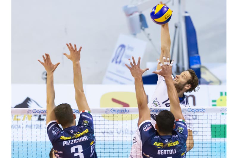 Dall’altra parte della rete, Luciano Cominetti schiera Alberini in palleggio con Santangelo opposto, Preti e Gasparini banda, Robbiati e Monguzzi centrali, libero: Butti
