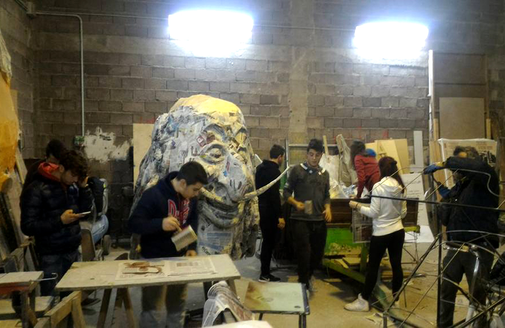 Nelle foto: la Pro Loco di Acquapendente e i volontari all’opera nella preparazione dei carri allegorici 2017.