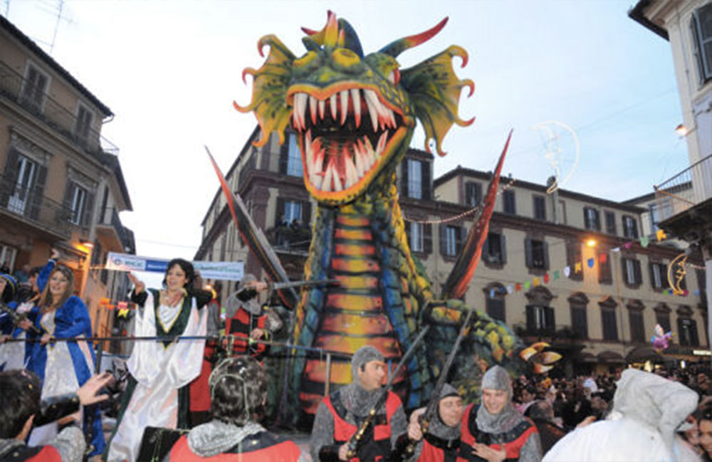 Ore 16: 318° Grandioso Corso di Gala con carri allegorici, lancio di caramelle, cioccolatini e nocciole, gruppi mascherati e bande folcloristiche. A seguire tutti in Piazza della Nave a ballare il tradizionale Saltarello.
