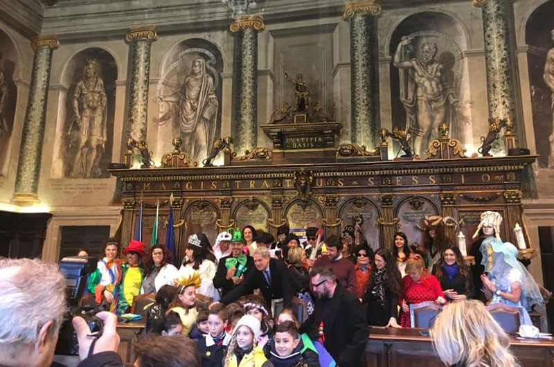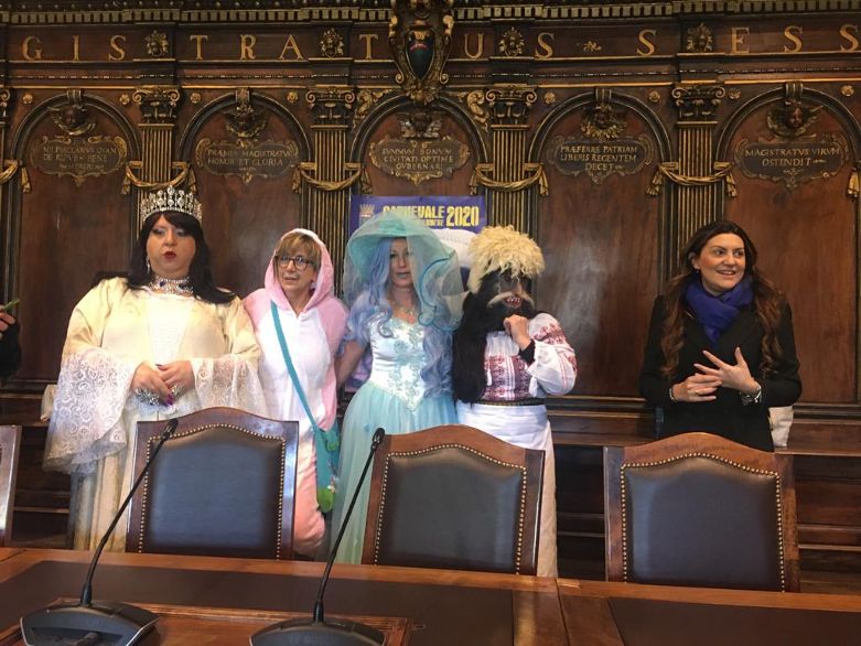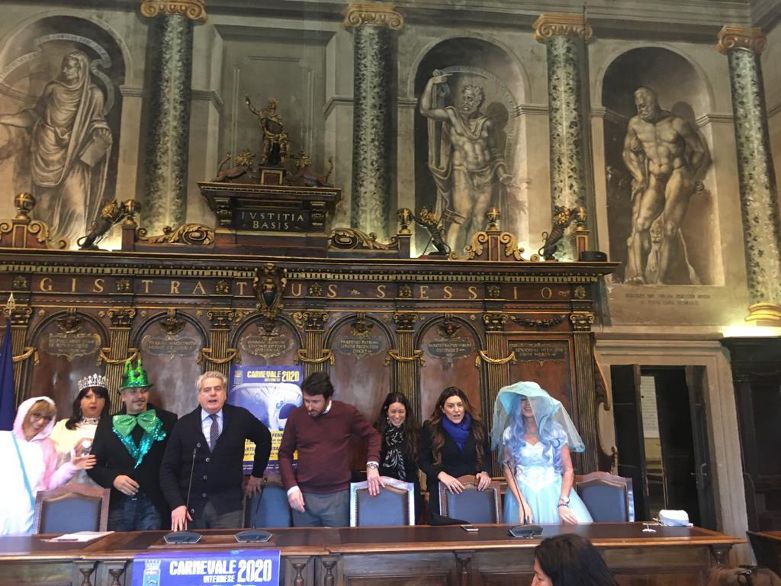 Una mattinata davvero chiassosa quella del 6 febbraio a Palazzo dei Priori, che ha visto la sala del consiglio popolarsi di alcune delle maschere protagoniste del Carnevale Viterbese, presentato nella conferenza.