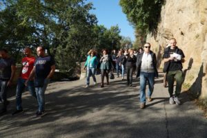 Il gruppo prosegue per la sorgente romana delle Fontane secche dove l’esperto Franco Profili illustra l’affascinante costruzione del manufatto per la captazione dell’acqua sorgi-va. Arianna Mocini del laboratorio di narrazione della CNA Viterbo-Civitavecchia spiega l’importanza e la varietà delle sorgenti con un dettagliato studio, si sofferma sulla storia del nome di Bagnoregio che deriva probabilmente da Balneum Regis in riferimento alla presenza di acque termali dalle particolari proprietà terapeutiche.