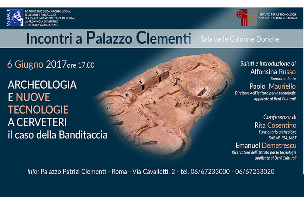 Proseguono gli incontri a Palazzo Clementi con la presentazione dei risultati delle attività di ricerca e valorizzazione sul sito della Necropoli della Banditaccia a Cerveteri, attraverso le nuove tecnologie promosse tra il 2013 e il 2017 dalla Soprintendenza e dal CNR-ITABC.