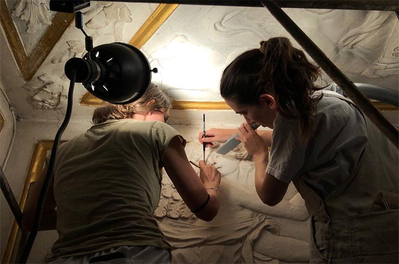 Castello Orsini di Vasanello, restauro degli stucchi delle allieve del corso di restauro di Unitus