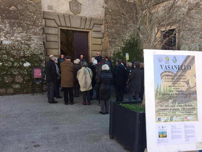 Si è conclusa con successo l’apertura ufficiale del Castello Orsini di Vasanello  nei giorni sabato 24 e domenica 25 Marzo. L’affluenza è stati di più di cento visitatori in due giorni che si sono mostrati molto interessati ed entusiasti a tutto. La loro curiosità è stata stimolata dalla Guida Silvia Tabacchini, Anna Rita Properzi,  e dai noi del progetto “Vasanello tra passato e futuro”. Prezioso l’aiuto della promoter Maria Gabriella Santarelli, del custode Mauro Manassei e del maestro ceramista Quinto Pio, ultimo artista della fabbrica Misciattelli. Il maestro ha raccontato la sua esperienza nella fabbrica dal 1958, quando appena dodicenne, ha iniziato a lavorare la ceramica del Marchese, la sua testimonianza unica tra ricordi, aneddoti e curiosità. Si ringrazia, e non per ultimi, l’odierna proprietaria Marchesa Elena Misciattelli per la sua gentile disponibilità, l’amministrazione comunale di Vasanello, il sindaco Antonio Porri per aver permesso di avviare i numerosi progetti del Servizio Civile Nazionale, impegnati nel paese e territorio, il parroco Don Vincenzo Prato per aver aperto e reso visibili le chiese storiche e il maestro Antonio Ricci del museo “Marco Ricci-Arti e mestieri di una volta”, un gioiello incastonato nel borgo medioevale.Il castello, i suoi giardini, le chiese storiche con i musei nel borgo, saranno di nuovo aperti ogni ultimo weekend del mese, con la partecipazione di artigiani con prodotti locali nel parco del castello. La domenica su prenotazione si farà il trekking all’area archeologica del distrutto Castrum Palazzolo o la passeggiata/racconto “I Cocciari-tra ceramica e museo” a cura del progetto Vasanello “tra passato e futuro”.