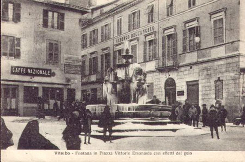 Ma nella Viterbo di allora c’era un albergo ancor più storico, l’Antico Angelo, le cui origini risalivano addirittura alla fine del Settecento. Si trovava in piazza delle Erbe dove sostavano le carrozze per il trasporto dei clienti dalla stazione. Nell’Ottocento venne ristrutturato più volte. Inizialmente si chiamava dell’Angelo. Poi con l’apertura del “Nuovo Angelo”, anche per un diritto di “precedenza”, venne chiamato “Antico Angelo”. A gestirlo nei primi anni del Novecento era quello stesso Moscucci che poi aprirà il “Nuovo” albergo in via dell’Orologio Vecchio. Il suo palmares, di tutto rispetto, parla di ospiti regali e d’onore come la regina d’Inghilterra, la famiglia del principe Esterhazy, il duca Paladino di Sassonia, il principe ereditario di Baviera, la regina di Napoli, Ferdinando I re di Napoli, Vittorio Emanuele II ed altri