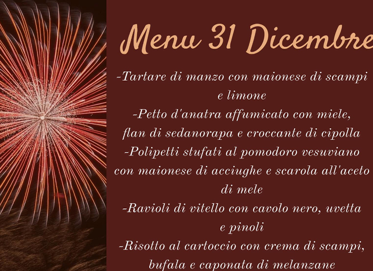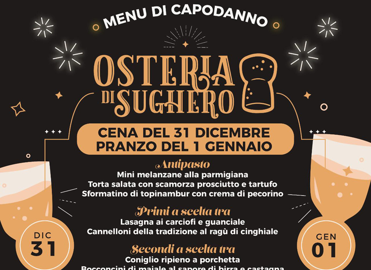 Viterbo-strada Tuscanese. Osteria di Sughero ha anticipato lo stop alle prenotazioni per 31 e 1°giorno dell’anno, prevede tra l’altro lasagna di carciofi e guanciale, coniglio ripieno a porchetta, lenticchie e cotechino vengono offerti gratis. E come suggerisce il ristoratore:” Prenota il tuo menù ,chiudi gli occhi immagina di stare nel nostro ristorante..ed è subito festa.” Qui la prenotazione si sono chiuse alle 17.00 del 30 dicembre.