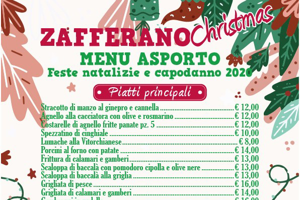 Sempre a Vitorchiano Lo Zafferano include lasagne e cannelloni di pesce, zuppa di ceci e lenticchie, nei primi stracotto di manzo al ginepro e cannella, lumache vitorchianesi, ma anche porcini al forno con patate, tra i dolci spicca lo zuccotto al pistacchio e mascarpone con cioccolato fondente, tanto per stringerci in una profonda coccola.Per ogni 50 euro di ordine viene compresa una bottiglia di buon vino