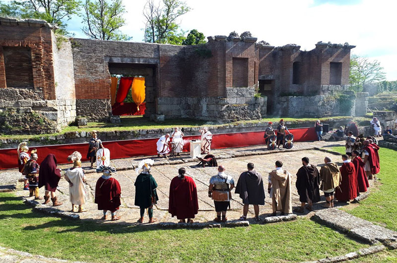 L’area archeologica sulla Teverina è stata “invasa” dai legionari dell’esercito romano e dai barbari, che, alla fine, si sono affrontati sul campo di battaglia. Apprezzati dai turisti “tabernae”, laboratori e il mercato degli schiavi.