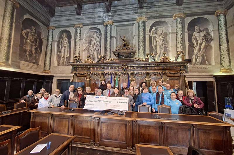 Questo lunedi 23 febbraio presso la Sala Consiliare del Comune di Viterbo, alla Presenza della Sindaca Chiara Frontini e degli Assessori Rosanna Giliberto e Katia Scardozzi, si è svolta la cerimonia di consegna alla ASD Sorrisi che Nuotano Eta Beta ODV del ricavato dalla vendita delle calzette, in occasione della “Calza della Befana più lunga del mondo”, trasportata per le vie della città lo scorso 10 gennaio 2026, dopo un primo rinvio per il meteo.