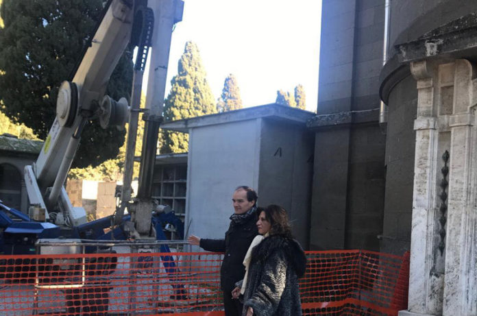 Al via i lavori di manutenzione del tetto della chiesa di San Lazzaro all’interno del cimitero. Lo comunicano gli assessori Elpidio Micci (servizi cimiteriali) e Laura Allegrini (lavori pubblici), sul posto questa mattina. “I lavori sono partiti ieri – spiega l’assessore Micci -. Questo intervento doveva essere stato effettuato qualche anno fa. Ormai non era più rinviabile. E non solo per una questione di manutenzione della chiesa. Il cattivo stato di conservazione del tetto ha permesso infiltrazioni di acque meteoriche che hanno provocato il danneggiamento degli affreschi del Vanni presenti sui soffitti interni e sulle pareti laterali della chiesa. Questa criticità mi era stata evidenziata a pochi giorni dal mio insediamento, durante il sopralluogo che feci in tutti i cimiteri del territorio comunale. Insieme all’assessore Allegrini ci siamo presi l’impegno di intervenire quanto prima su entrambi i fronti: la sistemazione del tetto danneggiato, causa principale del deperimento degli affreschi, e, non appena possibile, il recupero delle opere realizzate dal pittore viterbese Pietro Vanni. I tecnici del mio assessorato, che ringrazio, hanno predisposto un progetto. La chiesa, lo ricordo, è un bene vincolato, pertanto abbiamo dovuto attendere il parere favorevole della Soprintendenza per poter procedere con l’intervento di sistemazione. Nel mentre – aggiunge l’assessore Micci – sono stati reperiti i fondi e lo scorso dicembre abbiamo potuto affidare i lavori. Non nascondo la mia soddisfazione nel veder finalmente partire questo intervento tanto atteso e ormai fondamentale per salvaguardare un importante tassello del nostro patrimonio artistico e storico, tra l’altro in un luogo che merita particolare rispetto. Aggiungo che, all’intervento di manutenzione straordinaria in corso, faranno seguito altri lavori più consistenti, anche dal punto di vista del restauro conservativo”. “Il restauro degli affreschi è legato alla sistemazione del tetto – ha sottolineato e ribadito anche in questa occasione l’assessore Allegrini -. Ora finalmente possiamo pensare concretamente anche al recupero delle opere. Recupero per il quale il rettore dell’Università degli studi della Tuscia Ruggieri ha mostrato interesse e disponibilità”.