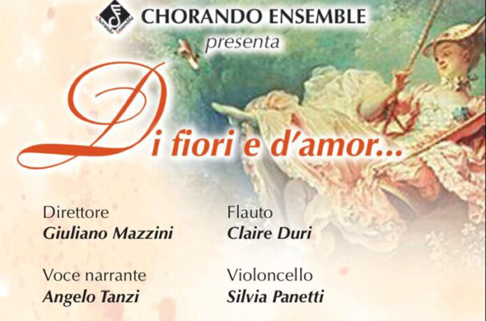 L’associazione corale “Chorando Ensemble” torna con un nuovo spettacolo con brani dedicati allo sbocciar dei fiori ed all’amore, temi che da sempre hanno ispirato poeti e musicisti. Infatti la scelta dei brani comprende autori che vanno dal cinquecento ai nostri giorni: da Nanino a Orlando di Lasso, da Vecchi a Gastoldi fino a Bàrdos e Bettinelli. La scelta del programma è stata curata dal M° Giuliano Mazzini e dalle Maestre collaboratrici, Roberta Ciapica e Claire Duri, che insieme hanno preparato il coro per questa nuova proposta musicale. Il coro sarà accompagnato al violoncello da Silvia Panetti, al flauto da Claire Duri e alle percussioni da Maria Vittoria Bosco. Alcuni brani letterari, scelti e letti da Angelo Tanzi, arricchiranno il concerto. La direzione è affidata al M° Giuliano Mazzini. Due gli appuntamenti: il primo venerdì prossimo 23 giugno alle 18,30 presso la sala Consiliare del Comune di Vitorchiano. Si replica domenica 25 giugno alle 19,00 nel chiostro della Chiesa di Santa Maria Nuova a Viterbo. L’ingresso è libero. Informazioni: 3476209839 – 3493632978 chorando.ensemble2@gmail.com