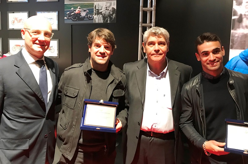 Sabato 18 novembre, nel suggestivo scenario del Media Event “Moto dei Miti” presso la ceramica Althea, creato con la collezione di Moto Da Corsa di Genesio Bevilacqua, sono state consegnate le targhe di attestazione del conferimento della cittadinanza onoraria di Civita Castellana ai campioni di motociclismo Carlos Checa e Raffaele De Rosa da parte del Sindaco Gianluca Angelelli e dell’Assessore allo sport Antonio Remo Zezza.
