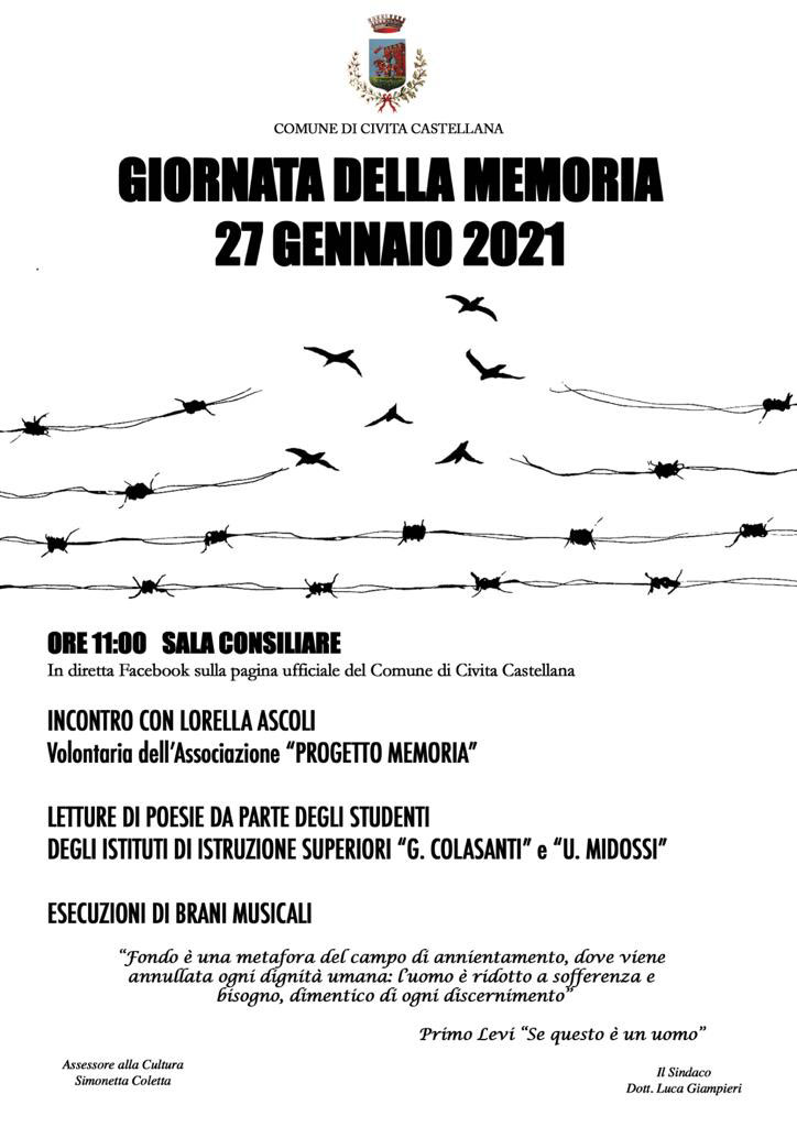 Civita Castellana,un evento streaming per onorare la Giornata della Memoria
