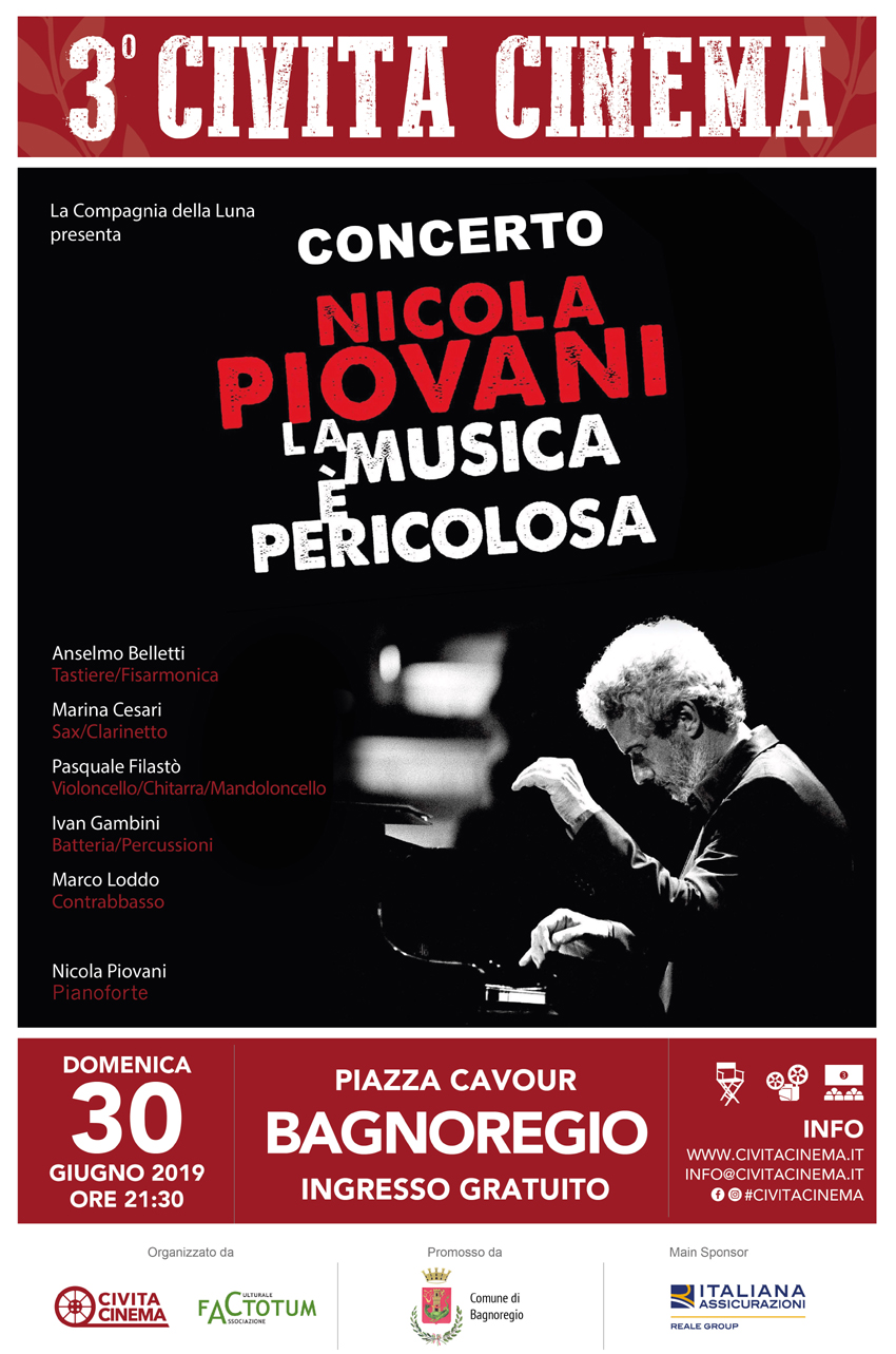 Civita Cinema 2019, dal 27 al 30 giugno, non mancherà di entusiasmare il pubblico. Annunciato per la chiusura di fine giugno il concerto di Nicola Piovani ‘La musica è pericolosa’. Accesso gratuito in piazza Cavour, luogo che lo scorso anno diede il via a un’edizione che rimarrà a lungo nel cuore dei bagnoresi per l’esibizione del funambolo Andrea Loreni che ha attraversato piazza Cavour sospeso nel vuoto in omaggio alla magica scena de ‘La Strada’ di Federico Fellini.